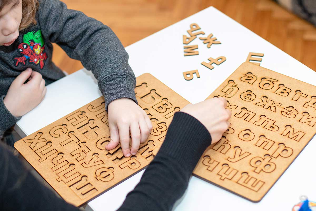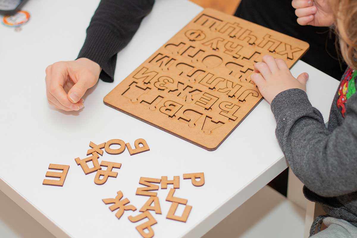 Azbuka za decu od drveta sa kalupom tj. podlogom.